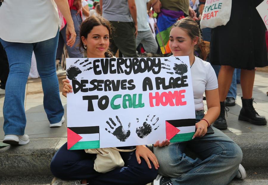Estudantes participam de protesto pró-Palestina em Roma, Itália, em 22 de setembro de 2025. (Xinhua/Li Jing)
