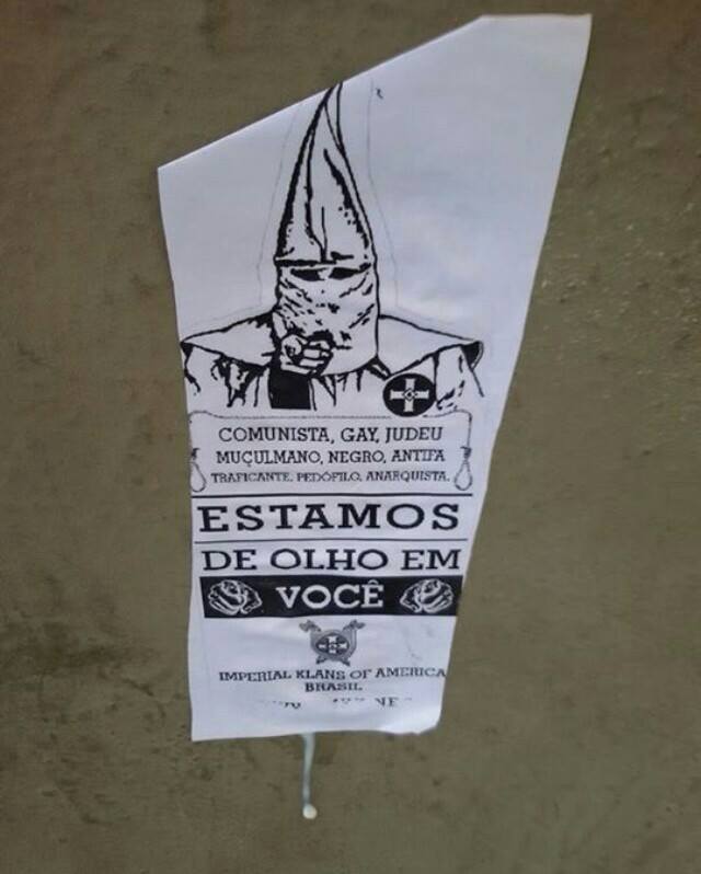 Em Niteroi, uma praça amanheceu com cartazes de um tal “Imperial Klans of America Brasil” nos postes.